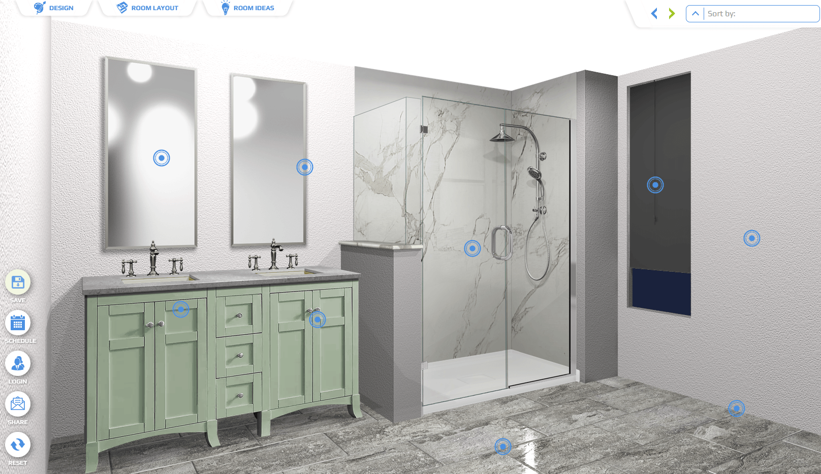 Time to get creative and design the bathroom of your dreams. In a matter of clicks you can customize your new bathroom with shower, tub, vanity and more!