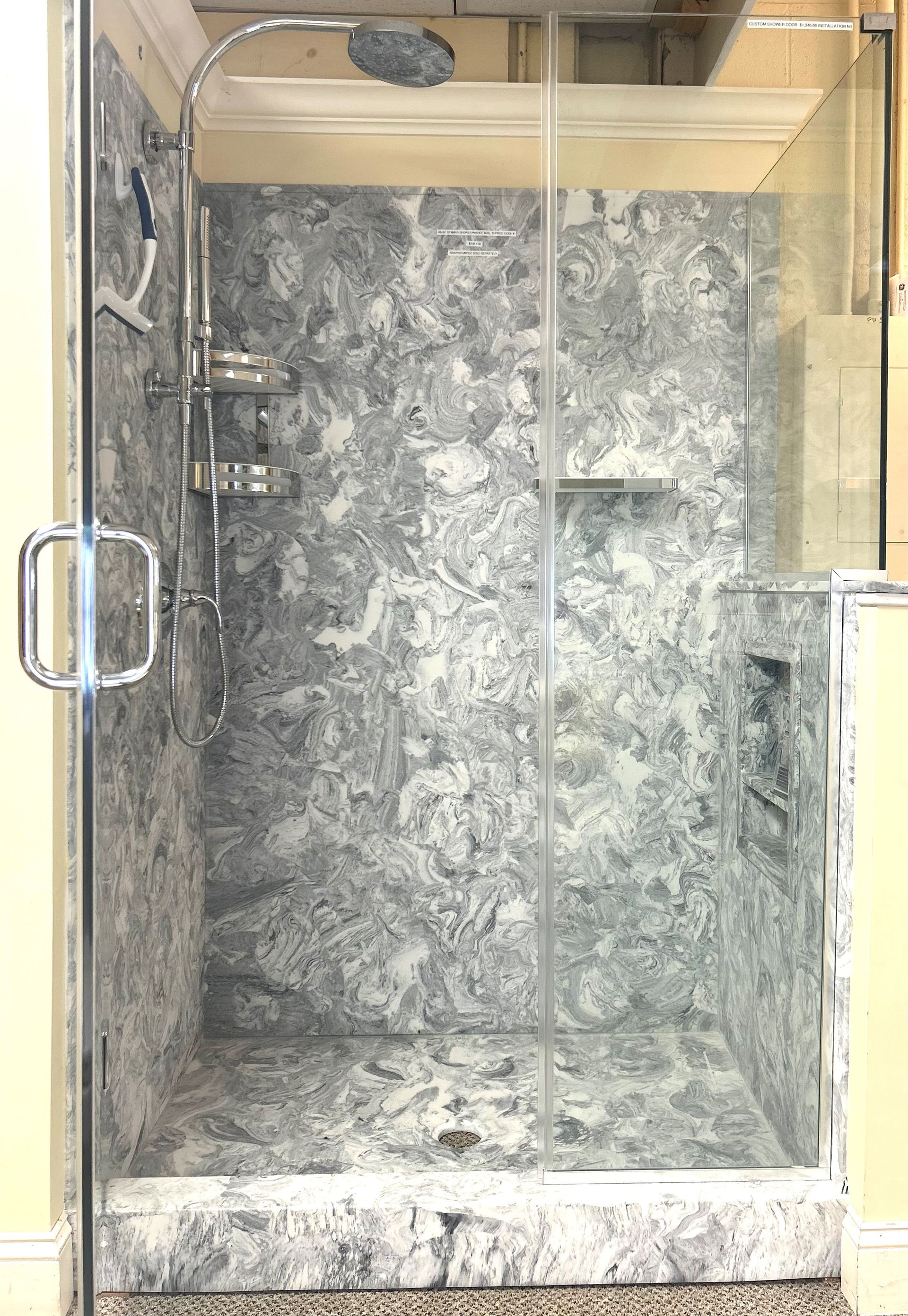 Check out this Vulcan Walkin Shower made by Synmar in our showroom (Make sure to take a look at our matching vanity). Come visit us today!